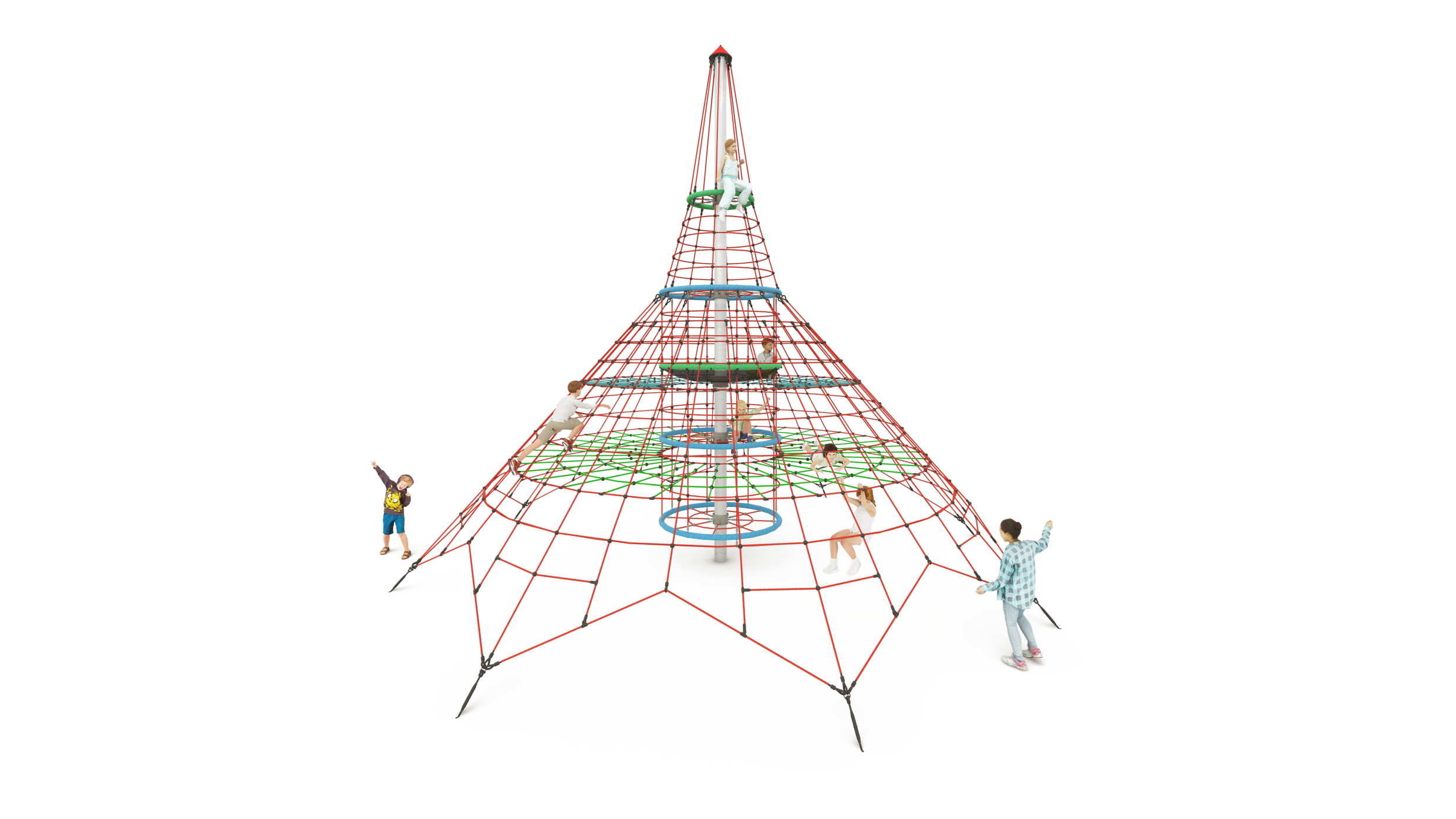 - 3 rope-wrapped rings (Ø 1.90 m), with net base