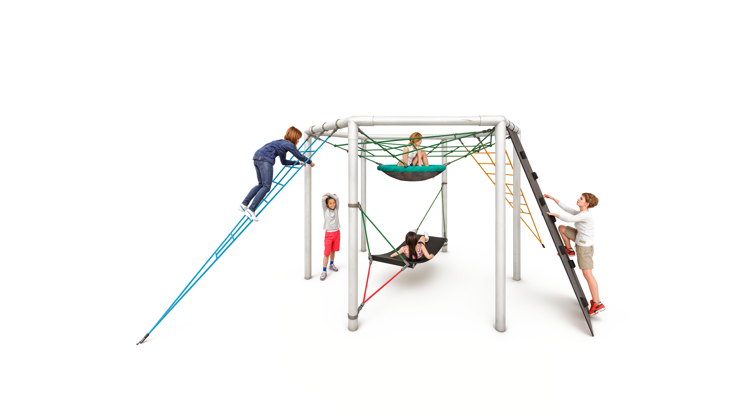 Our HUCK rope play equipment is characterised by its versatility and quality. In addition to various rope colours, such as green, blue, yellow and red, you can also choose from different plastic adapter colours. The colour of each device can be adapted to almost all customer requirements.