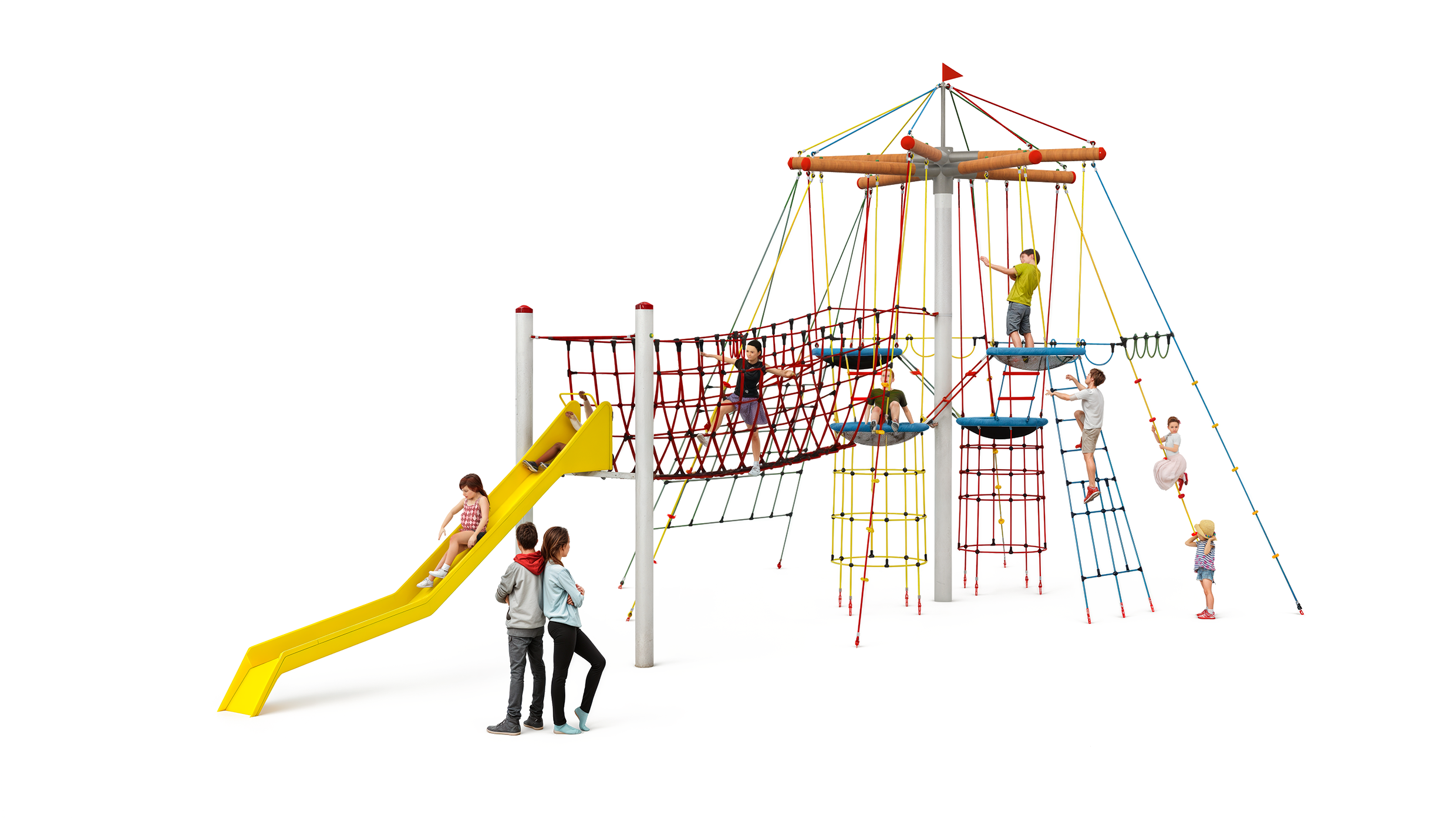 The Bird´s Nest Tree with bridge and slide is ideal for children from the age of 6. This equipment offers a variety of challenges that children of this age are looking for. Motor skills are trained and, of course, the fun of movement is right at the top!