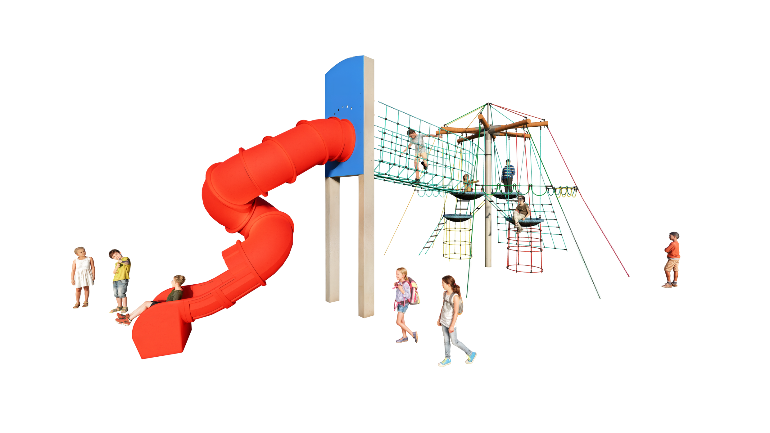 The Bird’s Nest Tree, with bridge and spiral slide is ideal for children from the age of 6. This equipment offers a variety of challenges that children of this age are looking for. Motor skills are trained and, of course, the fun of movement is right at the top!