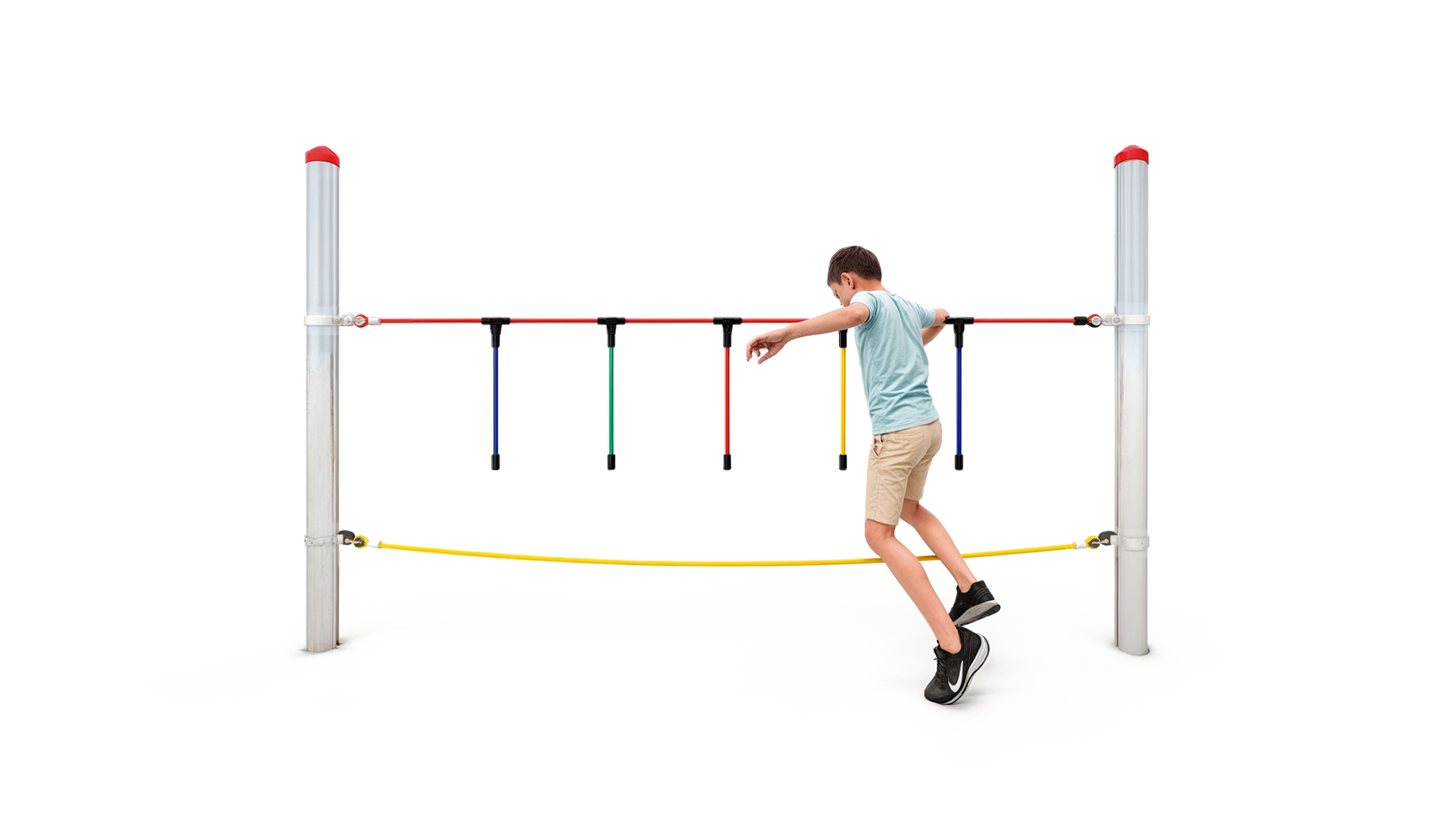 Highly variable, easy to install, easy to maintain and suitable for children aged from 2-14. Create your own playground according to your individual needs and space. Depending on age group and requirements, you can choose between different post heights, rubber mats, hanging ropes, wobbly beams, climbing nets and much more. Each parcour is unique and adaptable to suit your specific environment. The integration of barrier-free elements ensures that children of all abilities can play and learn together.