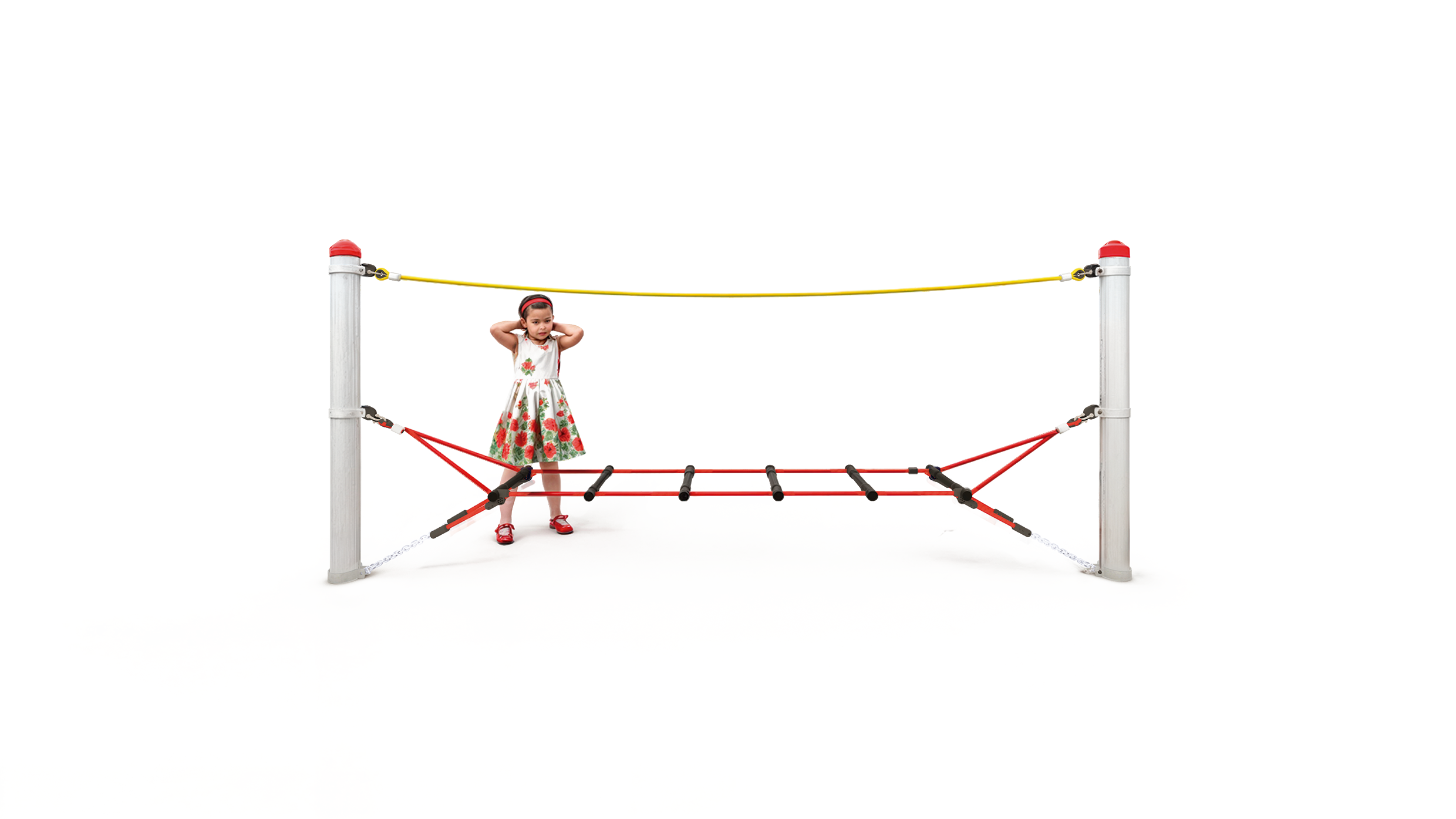 Highly variable, easy to install, easy to maintain and suitable for children aged from 2-14. Create your own playground according to your individual needs and space. Depending on age group and requirements, you can choose between different post heights, rubber mats, hanging ropes, wobbly beams, climbing nets and much more. Each parcour is unique and adaptable to suit your specific environment. The integration of barrier-free elements ensures that children of all abilities can play and learn together.
