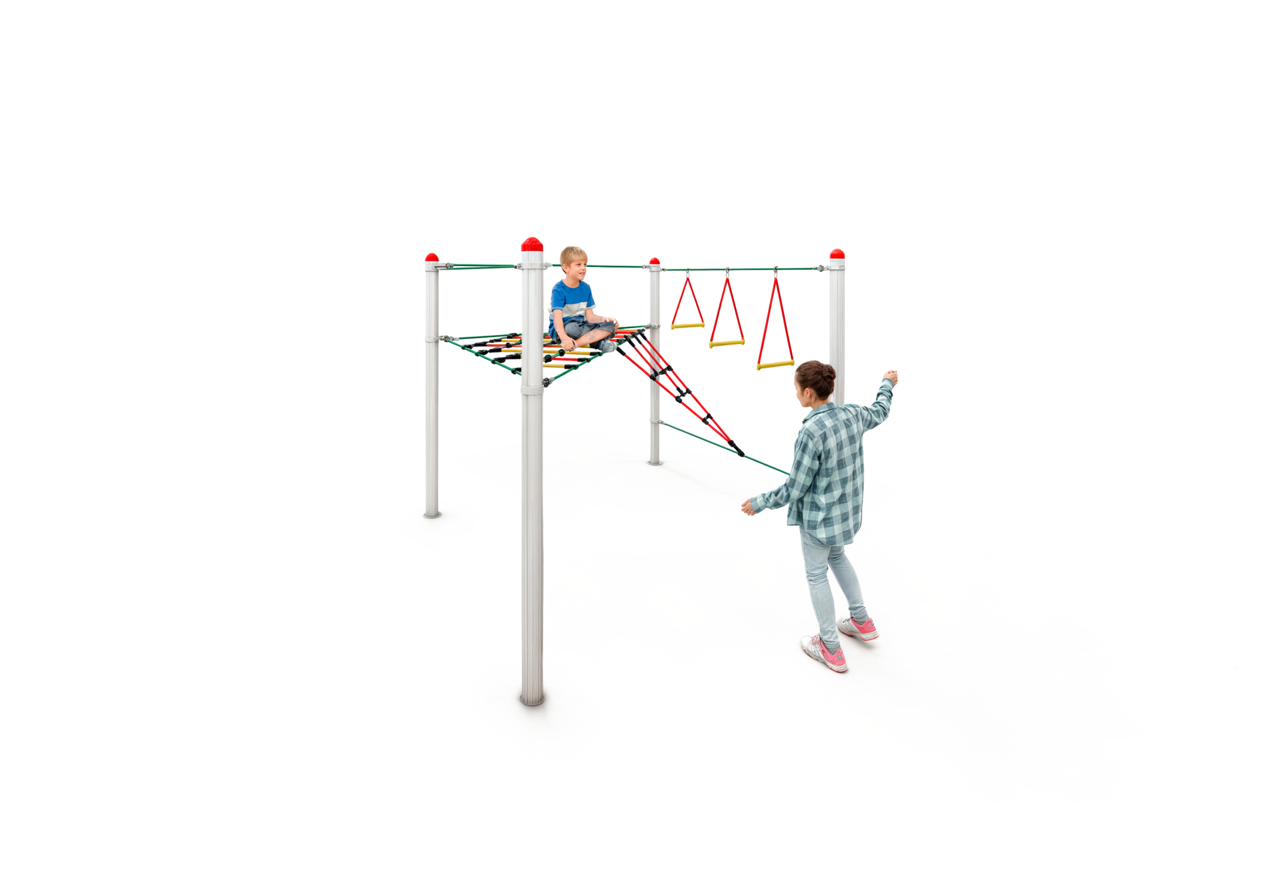 - 1 balancing rope with attached to climbing net with 3-corner shape