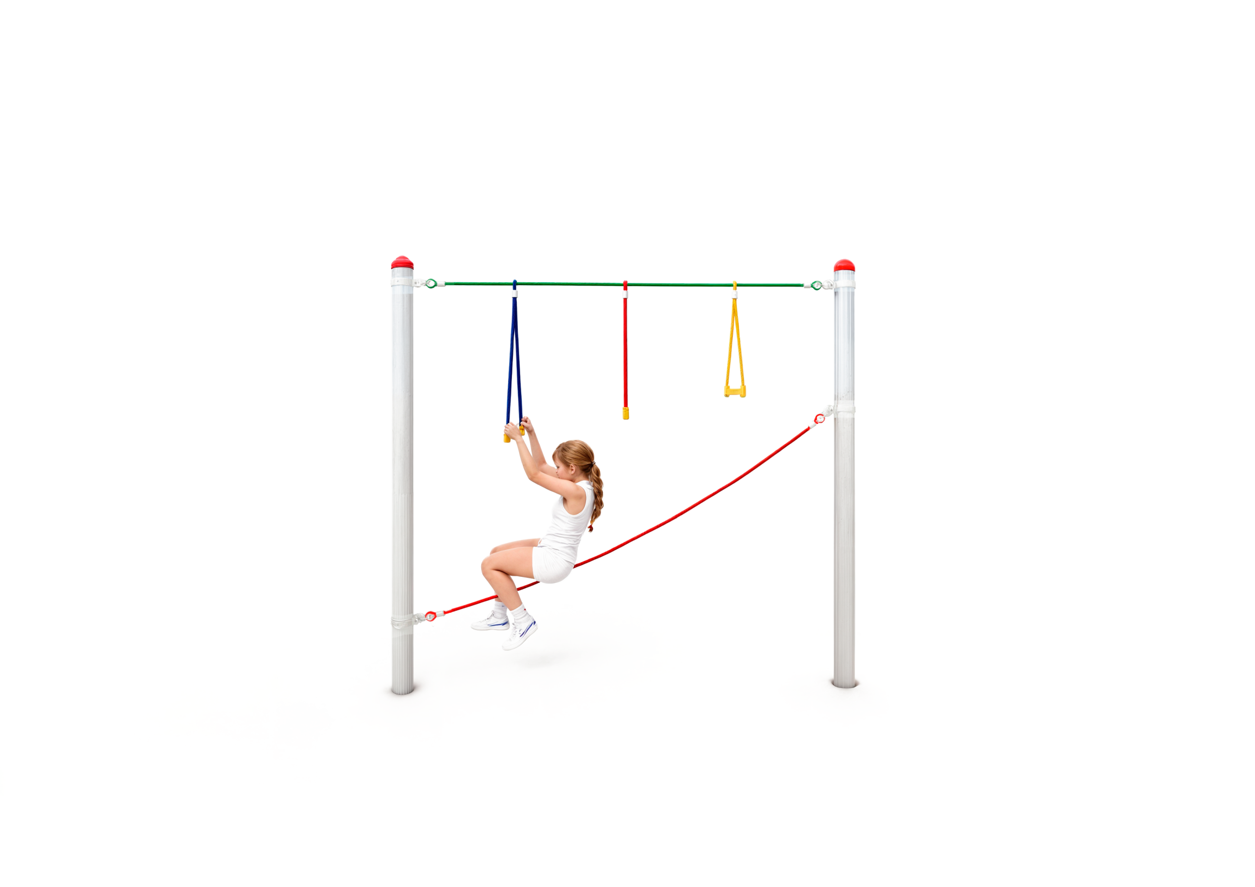Highly variable, easy to install, easy to maintain and suitable for children aged from 2-14. Create your own playground according to your individual needs and space. Depending on age group and requirements, you can choose between different post heights, rubber mats, hanging ropes, wobbly beams, climbing nets and much more. Each parcour is unique and adaptable to suit your specific environment. The integration of barrier-free elements ensures that children of all abilities can play and learn together.