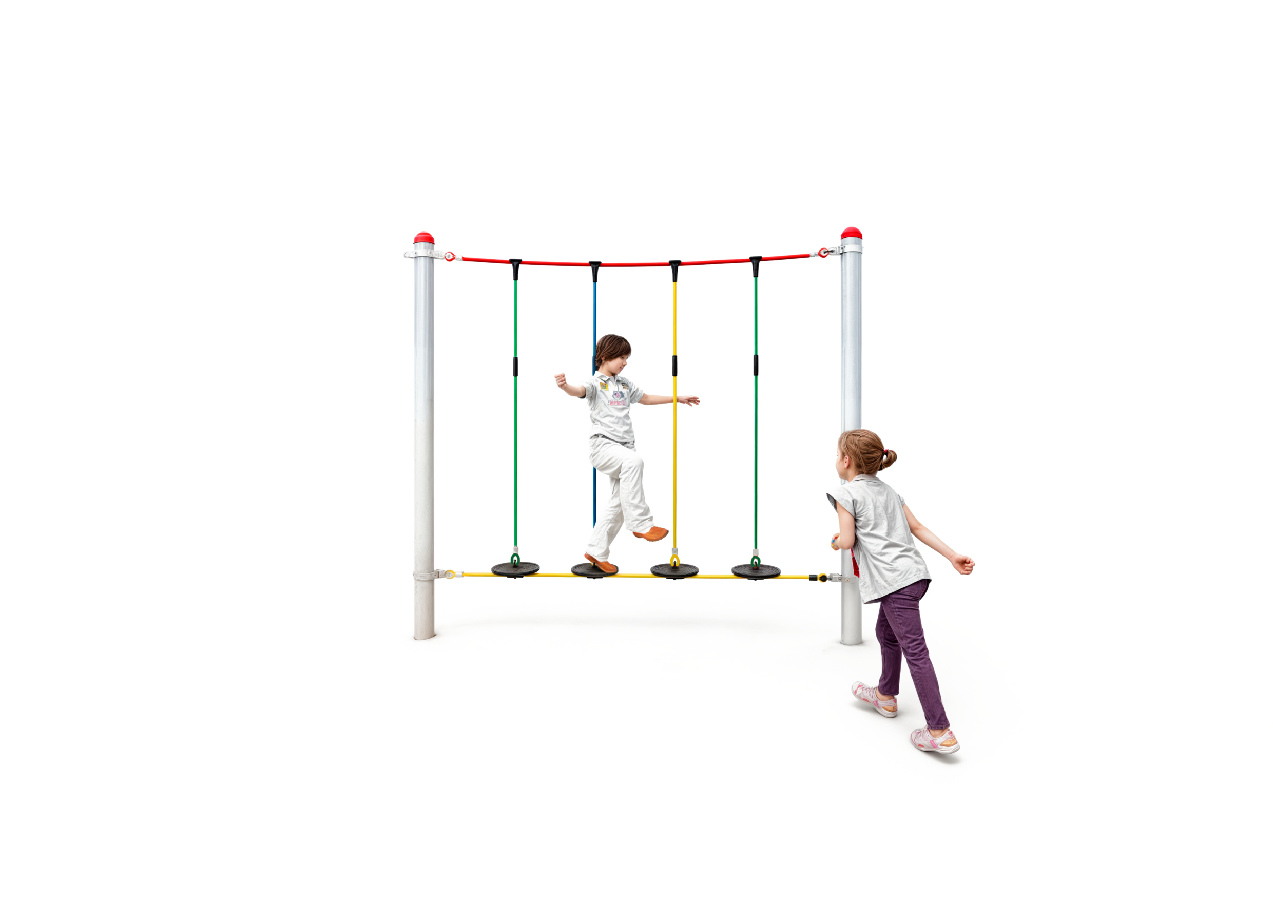 Highly variable, easy to install, easy to maintain and suitable for children aged from 2-14. Create your own playground according to your individual needs and space. Depending on age group and requirements, you can choose between different post heights, rubber mats, hanging ropes, wobbly beams, climbing nets and much more. Each parcour is unique and adaptable to suit your specific environment. The integration of barrier-free elements ensures that children of all abilities can play and learn together.