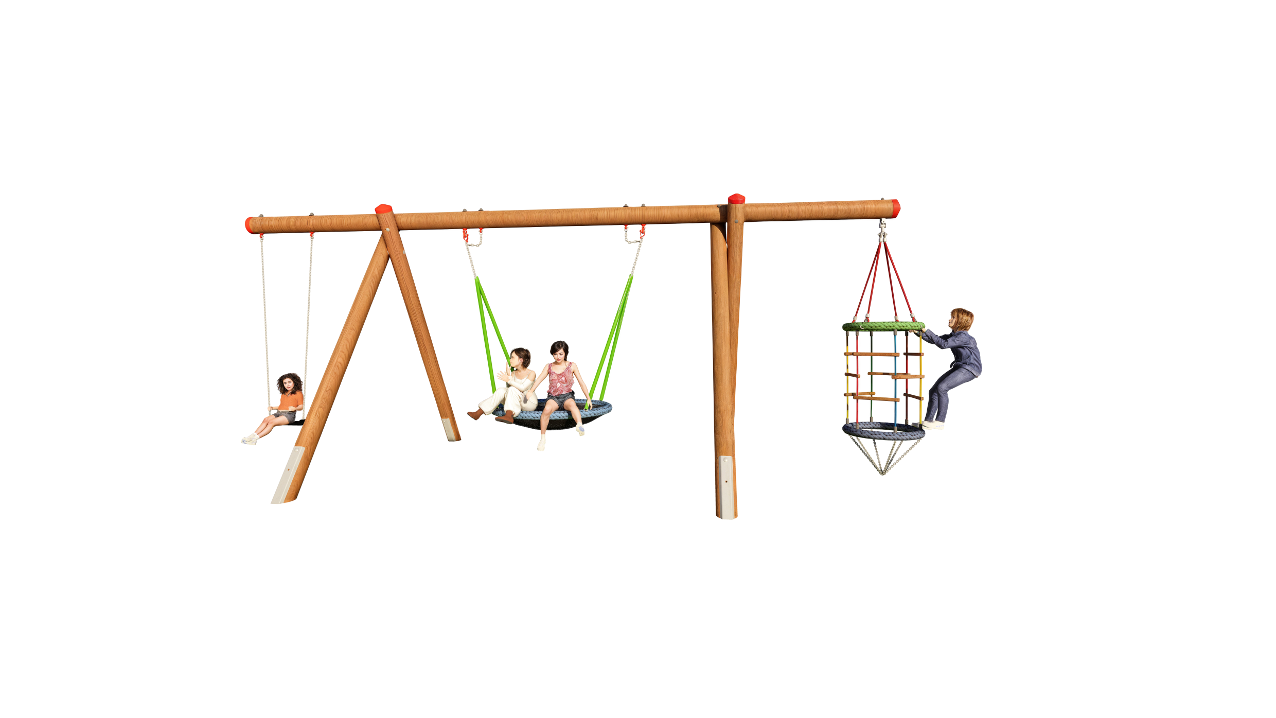 The Swing Frame douglas fir is ideal for children from the age of 6. This equipment offers a variety of challenges that children of this age are looking for. Motor skills are trained and, of course, the fun of movement is right at the top!
