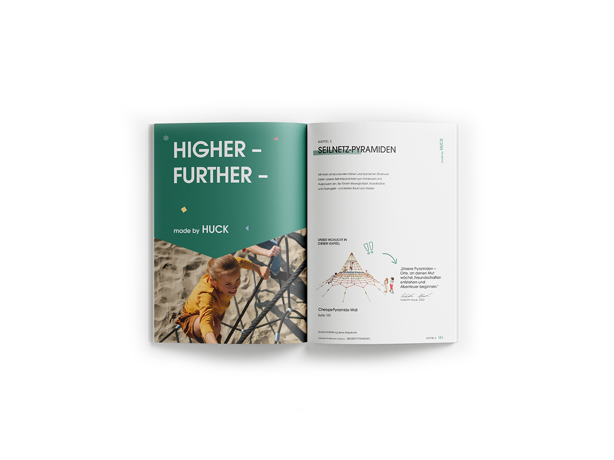 Auch im Bereich der großen Anlagen und Kombinationsideen erweitert der neue Katalog die Möglichkeiten deutlich. Neue Spielgeräte und Anlagen sorgen für mehr Vielfalt in der Planung – und zeigen, wie flexibel sich HUCK Lösungen kombinieren lassen.