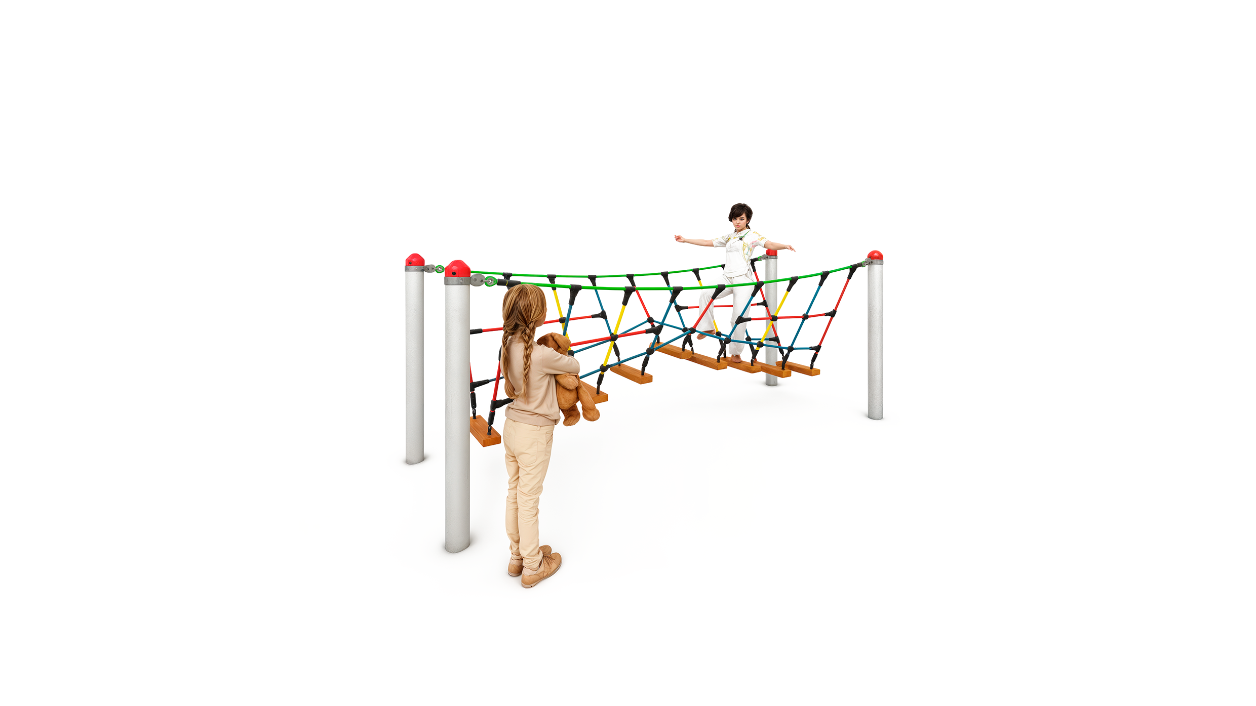 Unsere HUCK Seilspielgeräte zeichnen sich durch ihre Vielseitigkeit und Qualität aus. Neben diversen Seilfarben, wie z.B. grün, blau, gelb und rot, können Sie auch aus unterschiedlichen Plastikadapterfarben wählen. Jedes Gerät kann nahezu allen Kundenwünschen farblich angepasst werden.