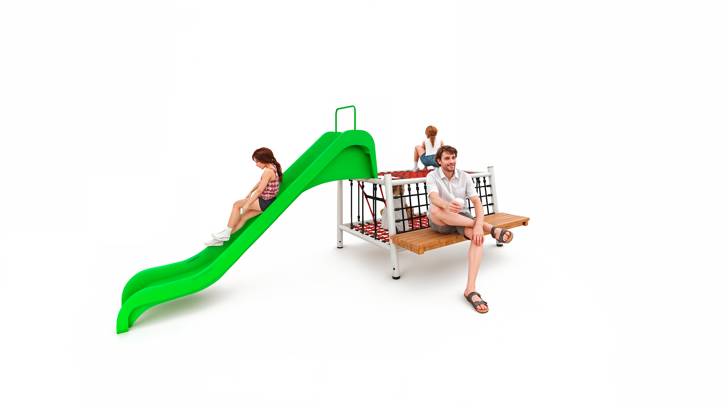 In einer Zeit, die von digitalen Medien und virtuellen Spielwelten geprägt wird, ist es wichtig sich außerhalb der eigenen vier Wände - z.B. auf dem Spielplatz - zu treffen. Auf unserer KLETTER-BANK MIT RUTSCHE können mehrere Kinder und Eltern zusammenkommen, sicher spielen und sich dabei austauschen.