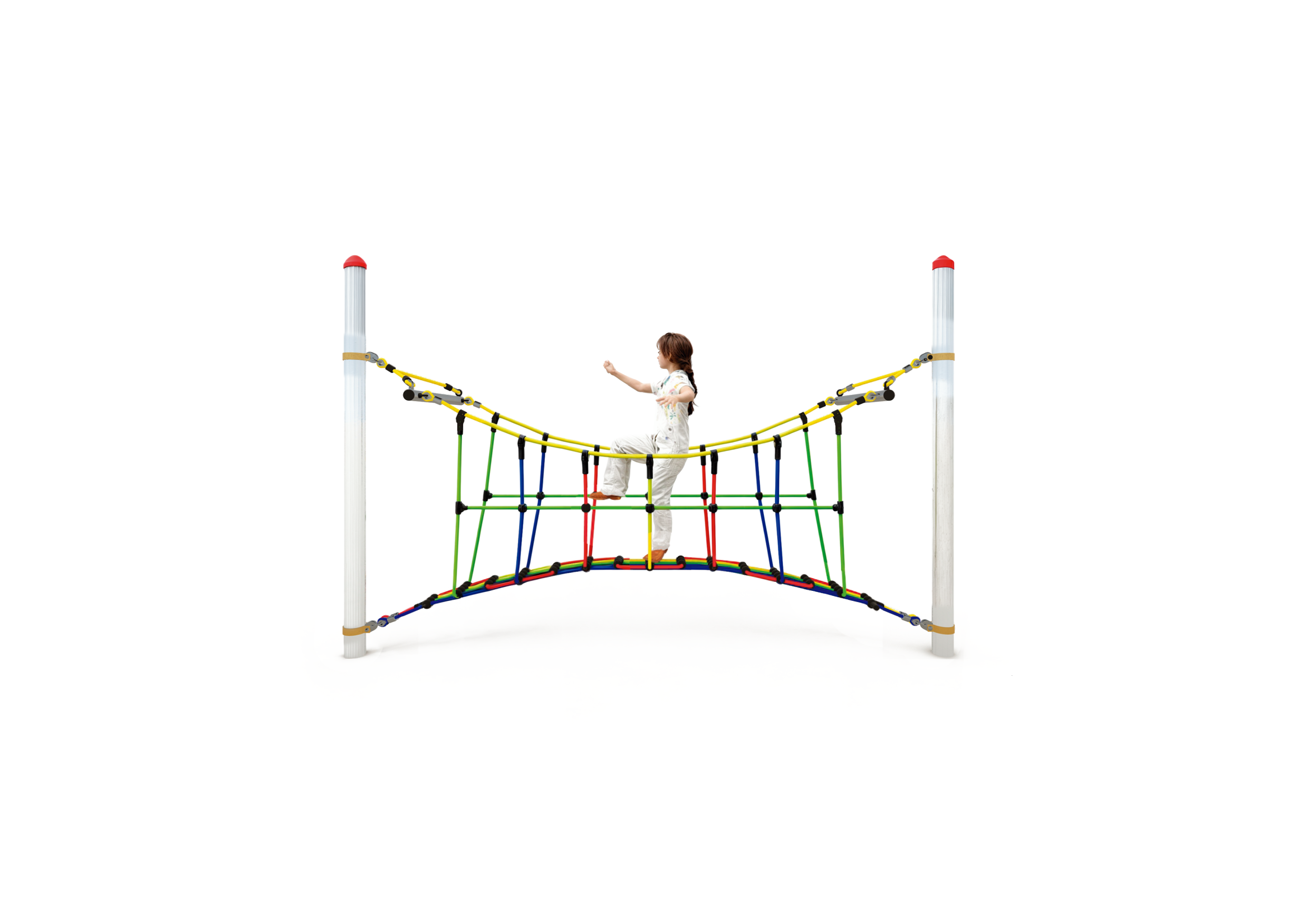 Variantenreich, einfach zu installieren, wartungsfreundlich und für Kinder von 2-14 Jahren geeignet. Kreieren Sie sich Ihre eigene Spielanlage nach Ihrem individuellen Platzangebot. Je nach Alter und Anspruch können Sie zwischen verschiedenen Pfostenhöhen, Gummimatten, Hangelseilen, Wackelbalken, Kletternetzen und vielem mehr wählen. Jeder Parcours wird so zum Unikat und ist an Ihre örtlichen Gegebenheiten angepasst. Die Integration von barrierefreien Elementen sorgt dafür, dass Kinder aller Fähigkeiten gemeinsam spielen und lernen können.